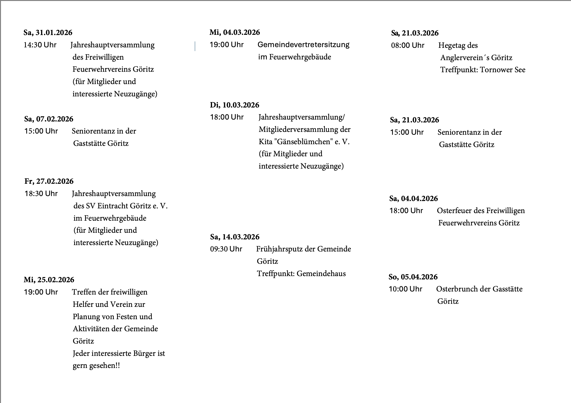 Der Veranstaltungskalender ist da